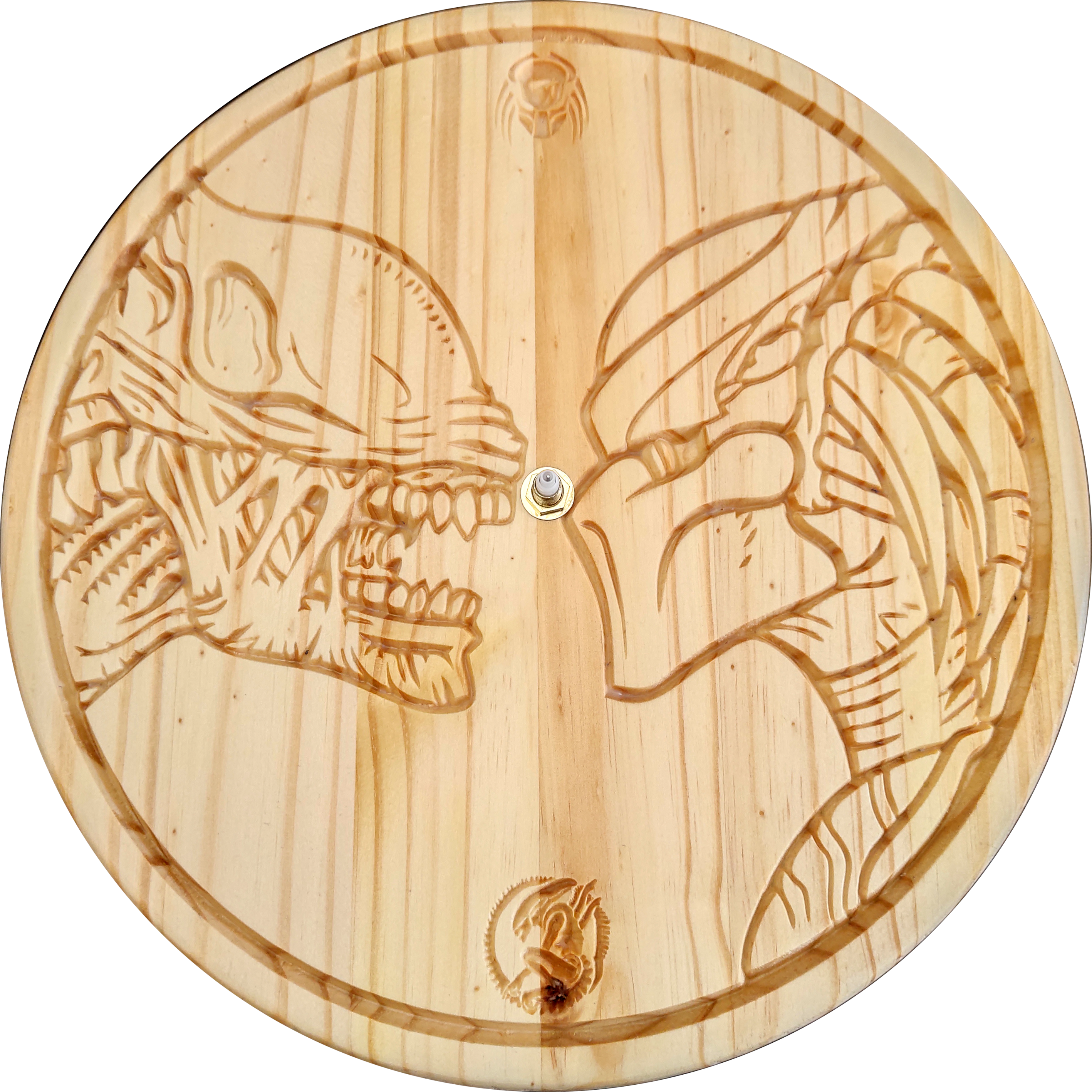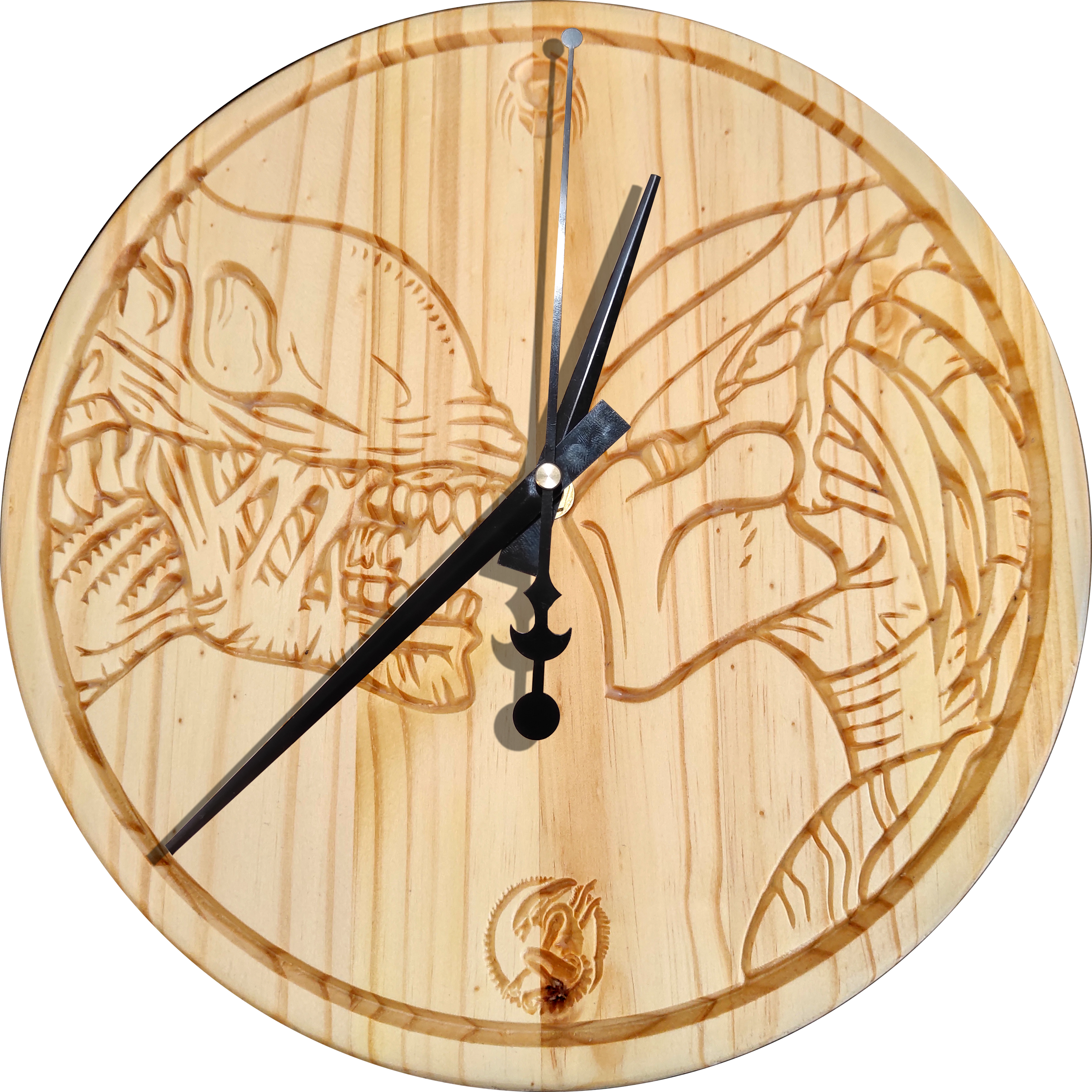 Horloge Murale « Alien Vs Predator » en Bois Naturel de Pin.