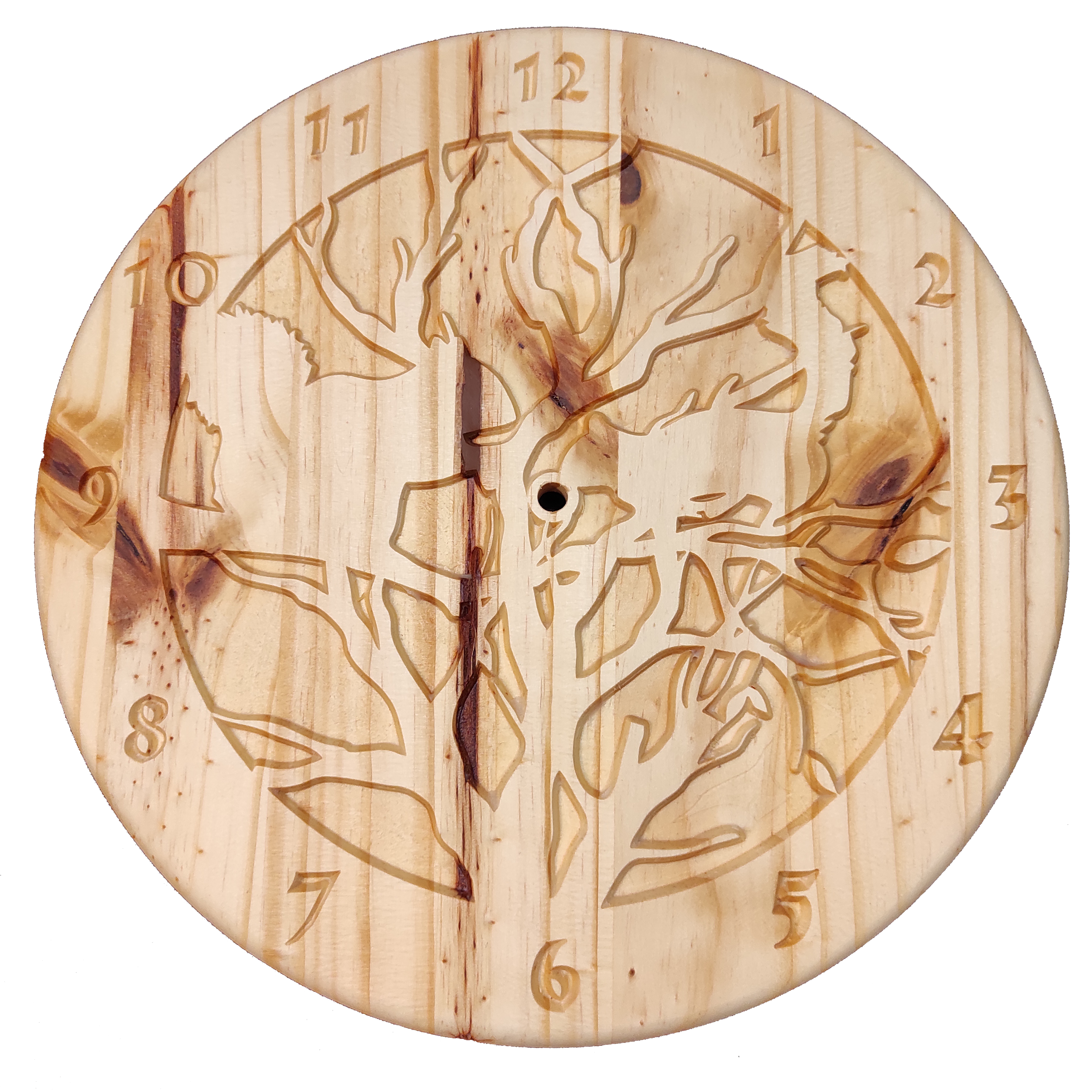 Horloge Murale “Écureuils”, fabriquée en Bois Naturel de Pin.