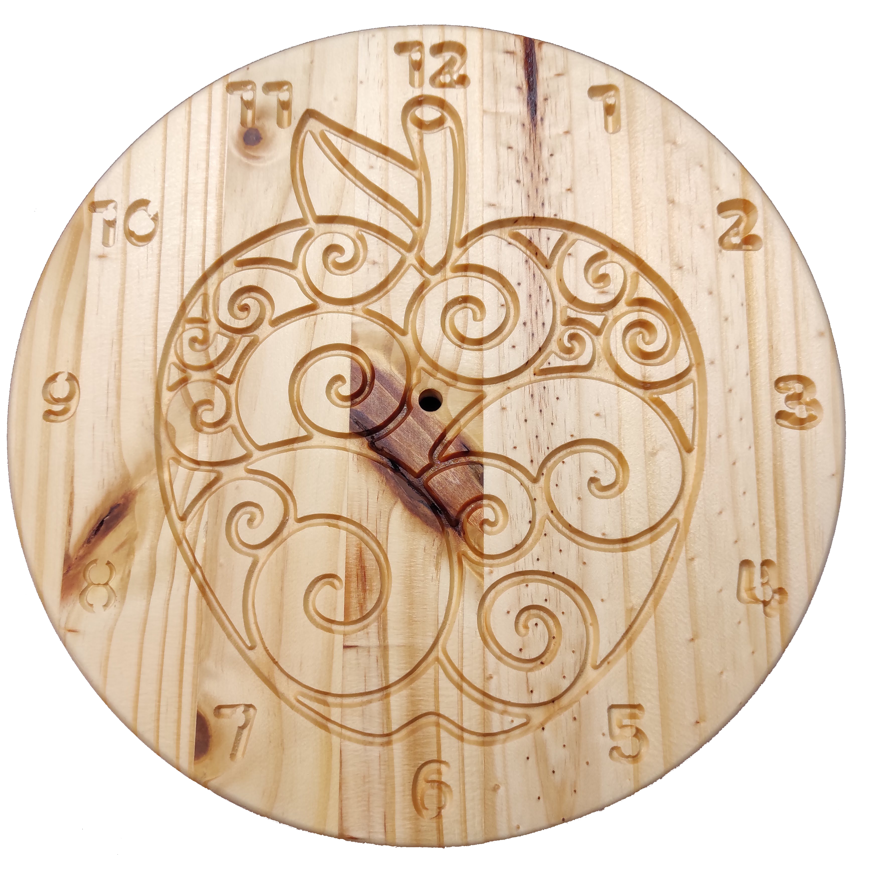 Horloge Murale “Pomme”, fabriquée en Bois Naturel de Pin.